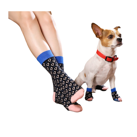 Không trượt trượt PET PUPPY Doggie Grip vớ chân bảo vệ trong nhà kiểm soát lực kéo 3 Bộ con chó và con người vớ với khăn