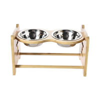 Kediler ve köpekler için ayarlanabilir bambu yükseltilmiş hayvan mama kabı standı